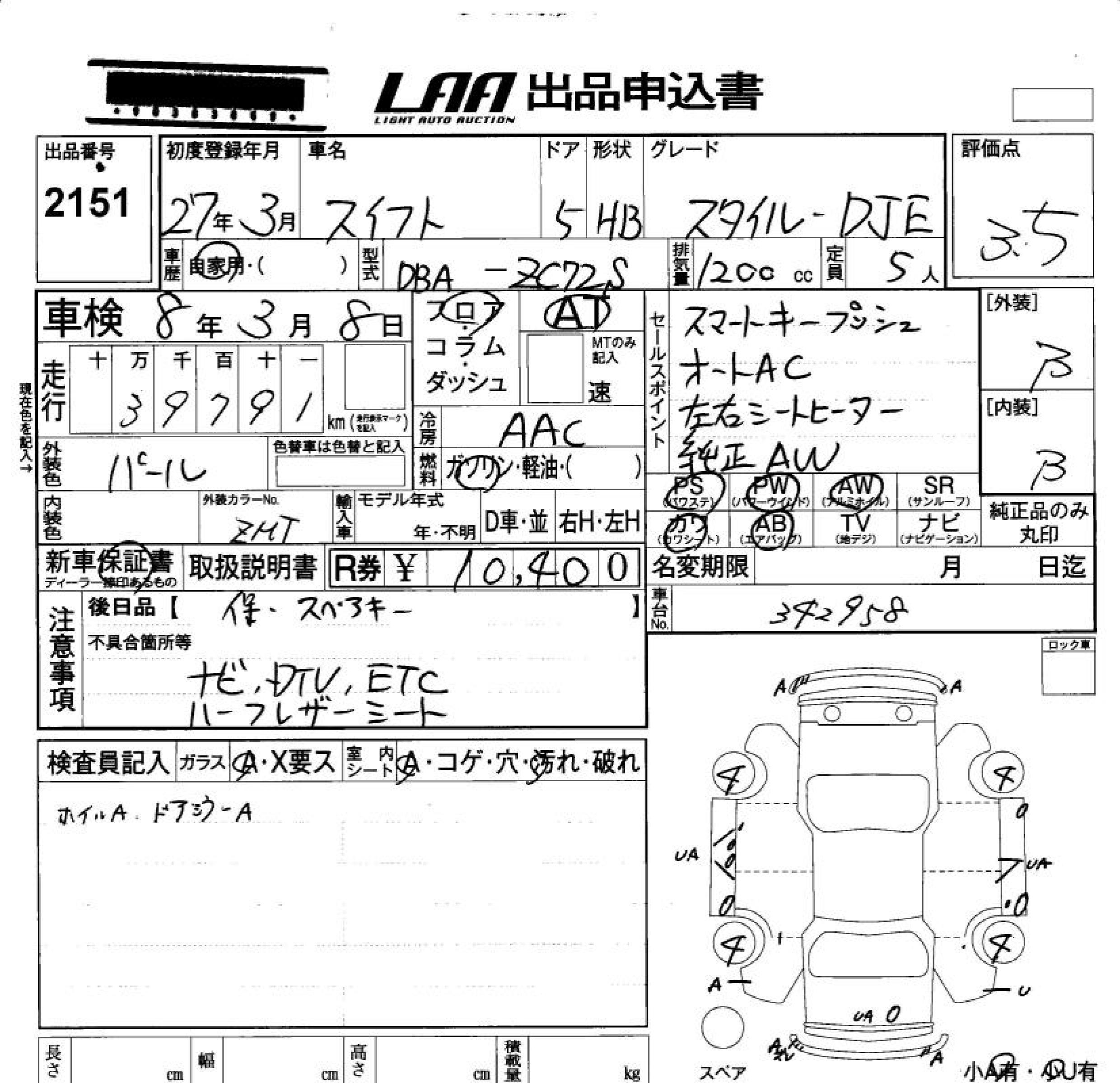 SUZUKI SWIFT STYLE -DJE - лот 2151