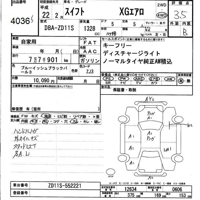 SUZUKI SWIFT 4WD XG AERO - лот 4036
