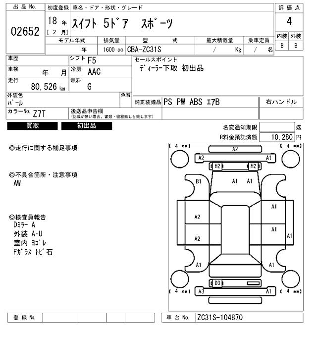 SUZUKI SWIFT SPORT - лот 2652