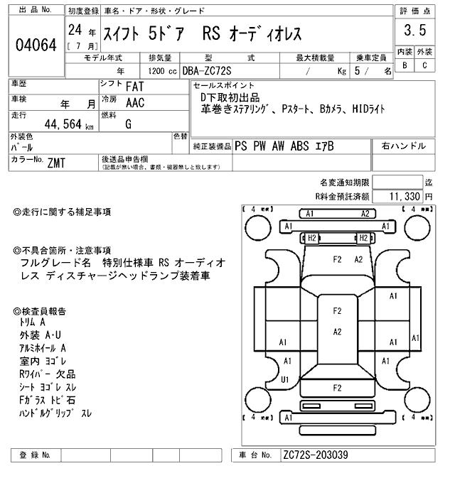 SUZUKI SWIFT RS WITHOUT AUDIO - лот 4064