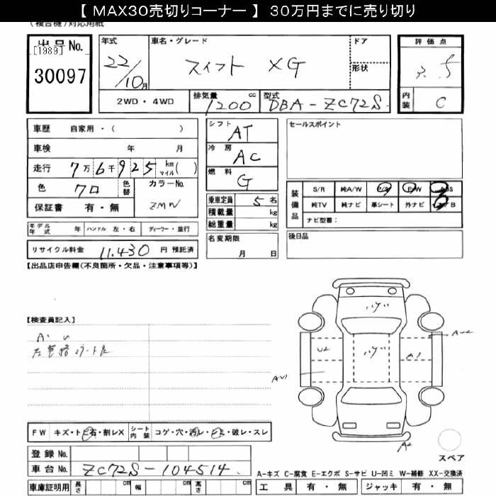 SUZUKI SWIFT XG - лот 30097