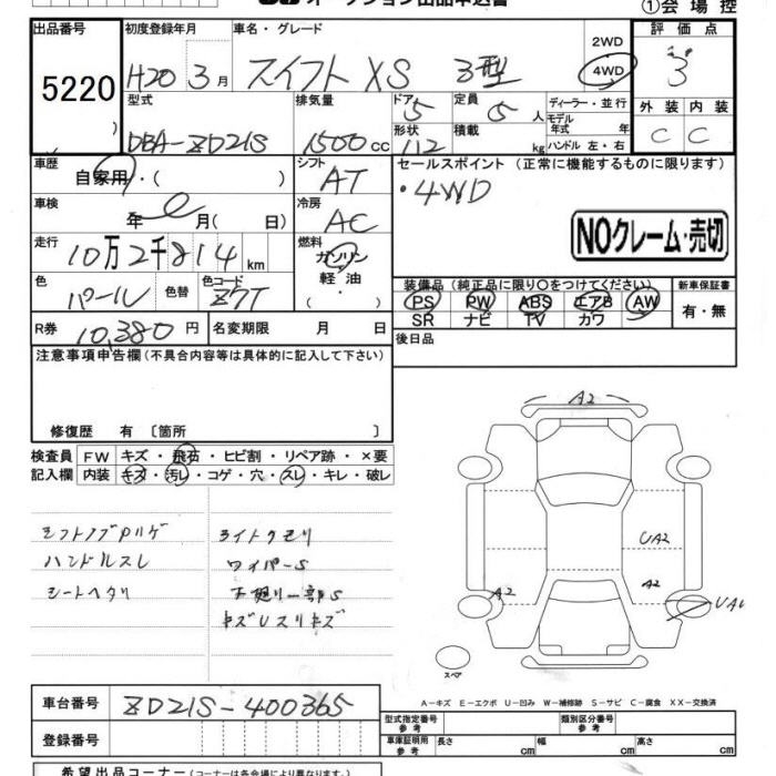 SUZUKI SWIFT 4WD XS 3 RATTLING - лот 5220