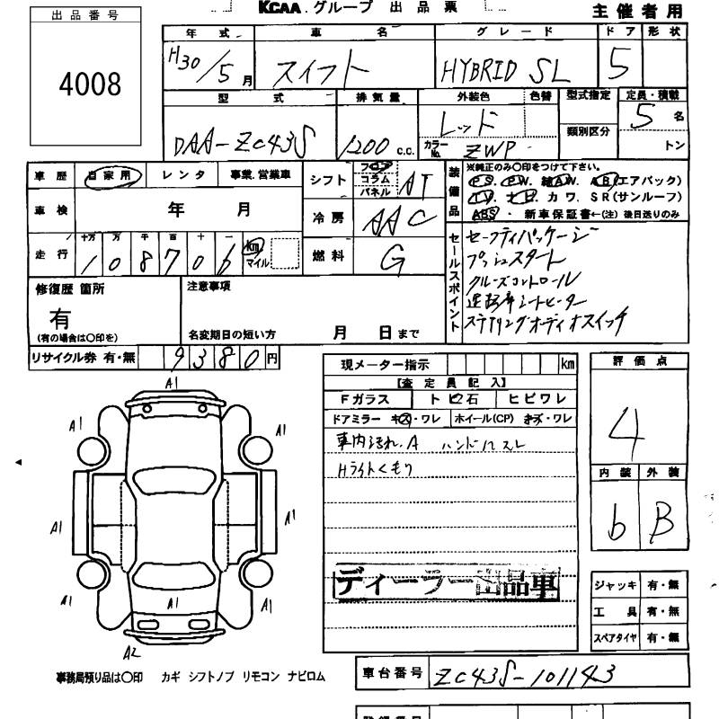 SUZUKI SWIFT HYBRID SL - лот 4008