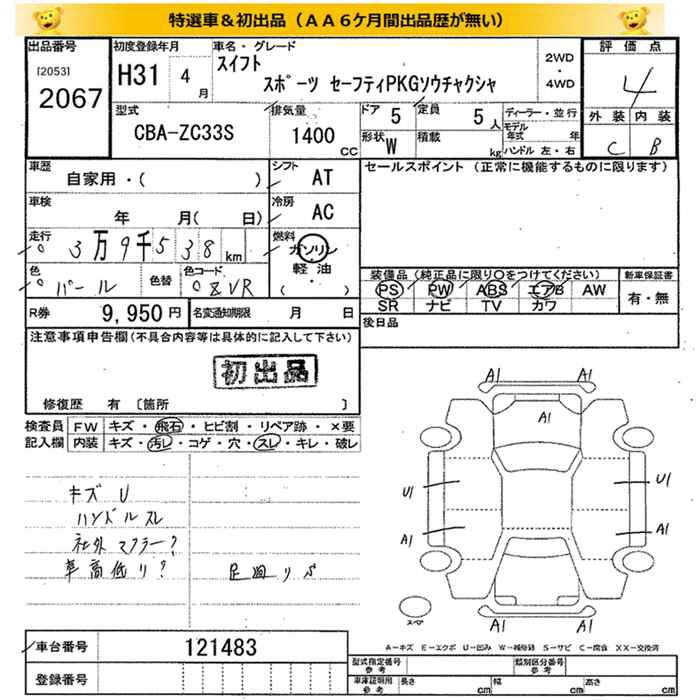 SUZUKI SWIFT SPORT SAFETY PKGSOU TEA K CAR - лот 2067