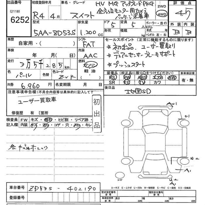 SUZUKI SWIFT 4WD HYBRID MG UP GRADE P - лот 6252