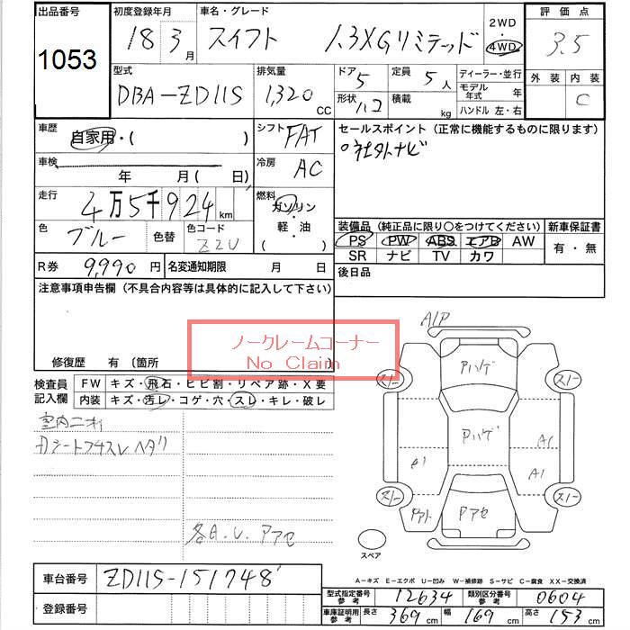 SUZUKI SWIFT 4WD 1.3XG LTD - лот 1053