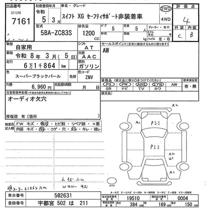 SUZUKI SWIFT XG SUZUKI SAFETY SUPPORT HISOU TEA K CAR - лот 7161