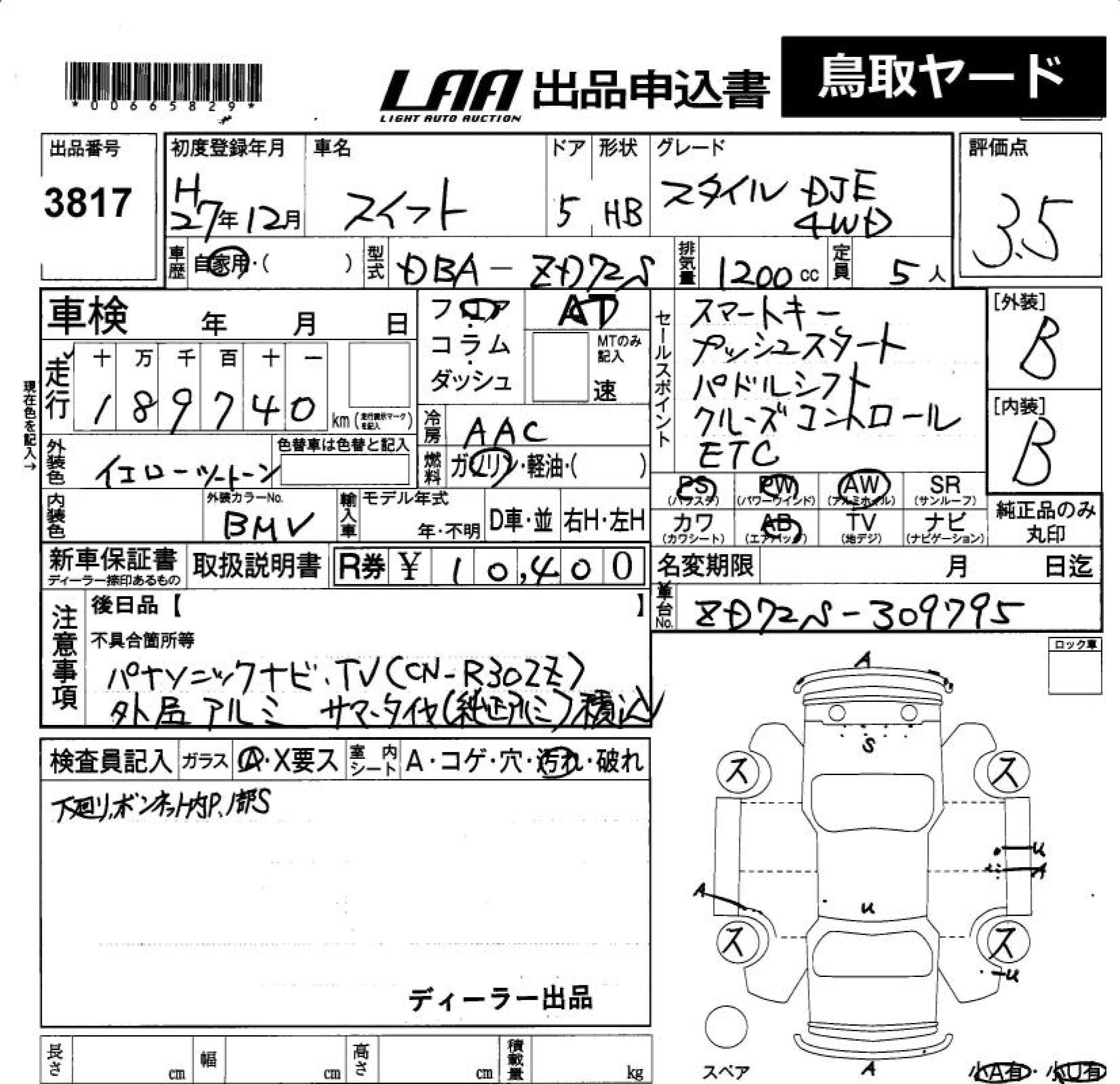 SUZUKI SWIFT STYLE -DJE 4WD - лот 3817