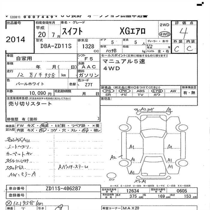 SUZUKI SWIFT 4WD XG AERO - лот 2014