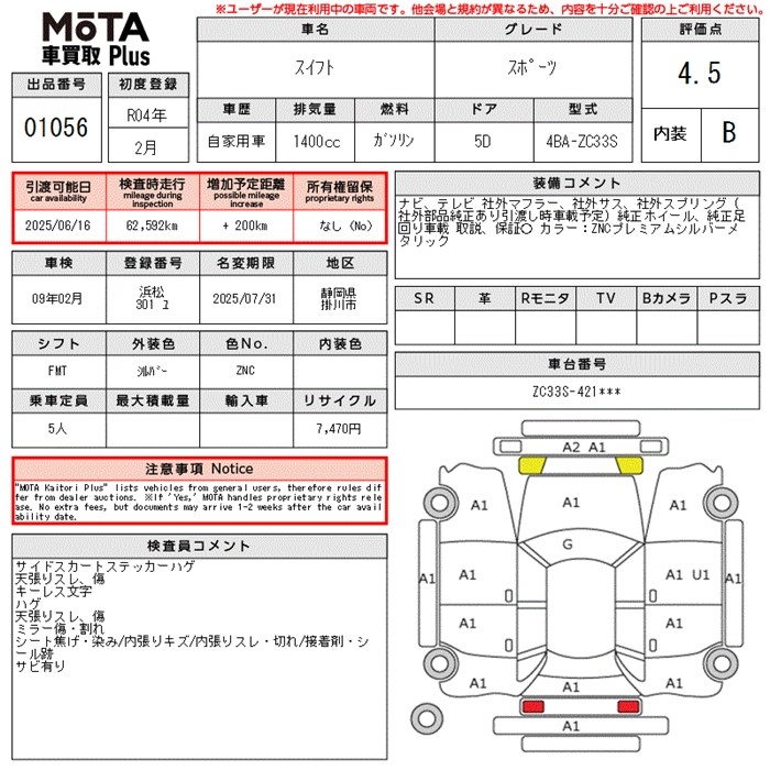 SUZUKI SWIFT SPORT - лот 1056