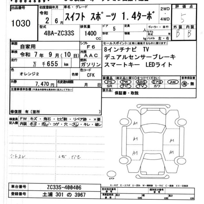 SUZUKI SWIFT SPORT 1.4 TURBO - лот 1030