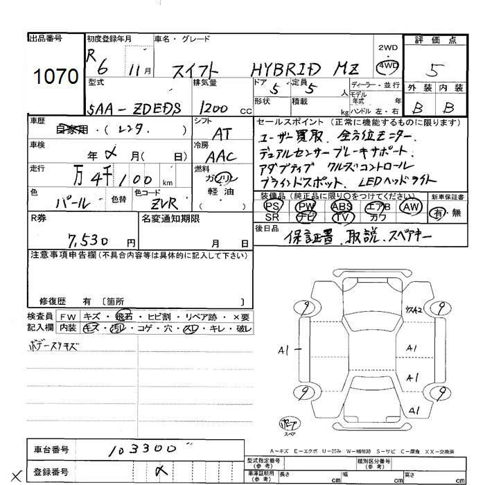 SUZUKI SWIFT 4WD HYBRID MZ - лот 1070
