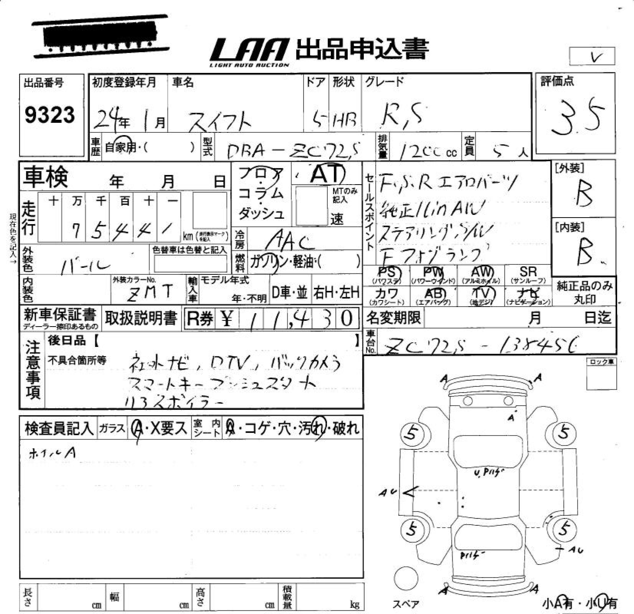 SUZUKI SWIFT RS - лот 9323