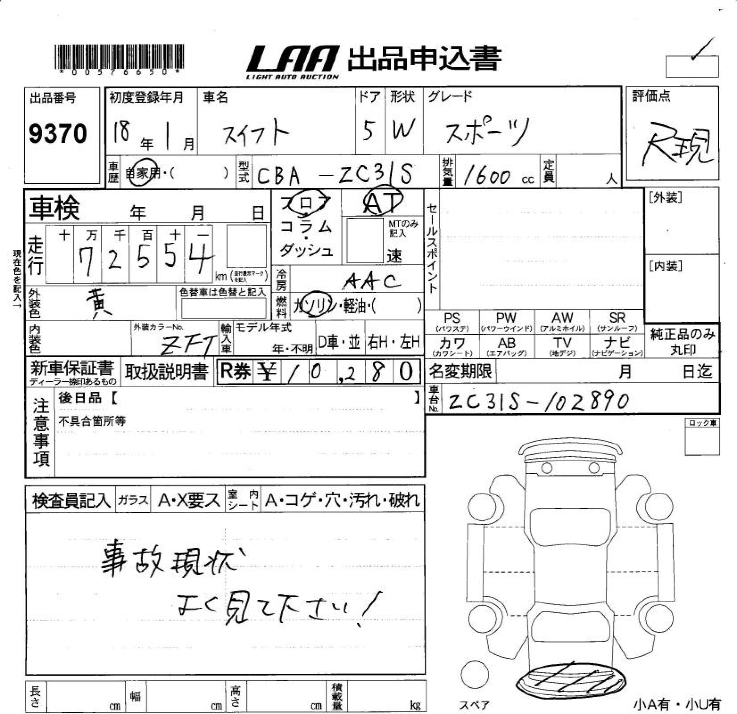 SUZUKI SWIFT SPORT - лот 9370
