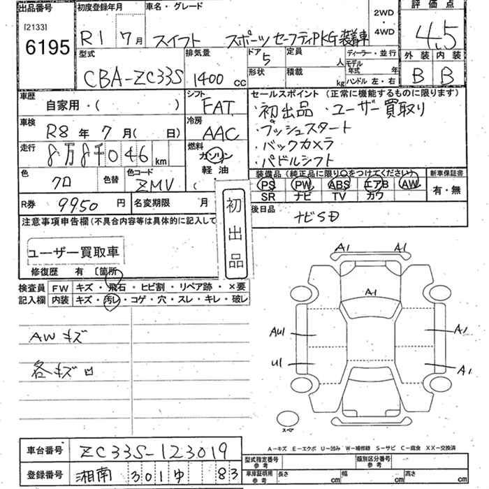 SUZUKI SWIFT SPORT SAFETY PKGSOU TEA K CAR - лот 6195