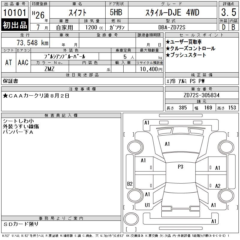SUZUKI SWIFT STYLE -DJE 4WD - лот 10101