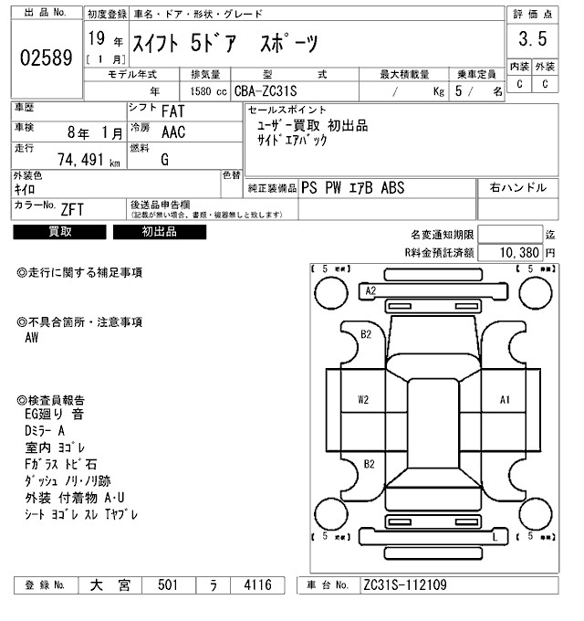 SUZUKI SWIFT SPORT - лот 2589