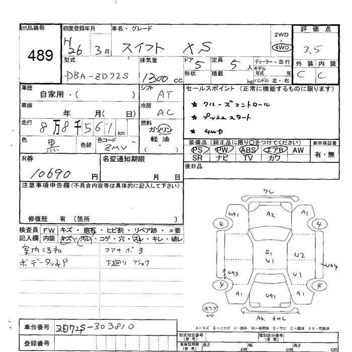 SUZUKI SWIFT 4WD XS - лот 489