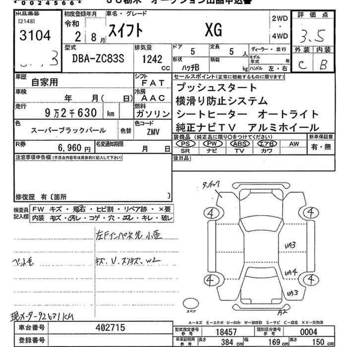 SUZUKI SWIFT XG - лот 3104