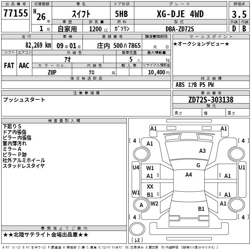 SUZUKI SWIFT XG-DJE 4WD - лот 77155