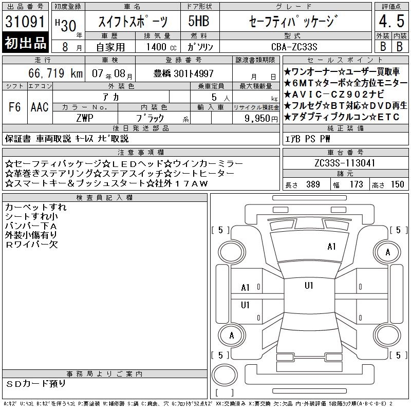 SUZUKI SWIFT SPORTS - лот 31091