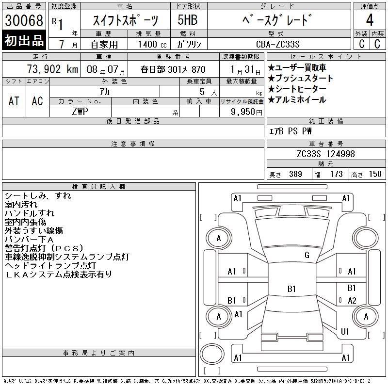 Все аукционы SUZUKI SWIFT SPORTS