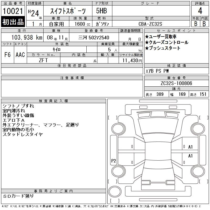 Все аукционы SUZUKI SWIFT SPORTS