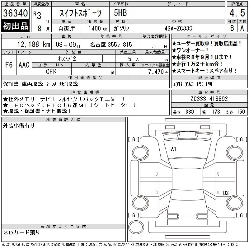 SUZUKI SWIFT SPORTS - лот 36340