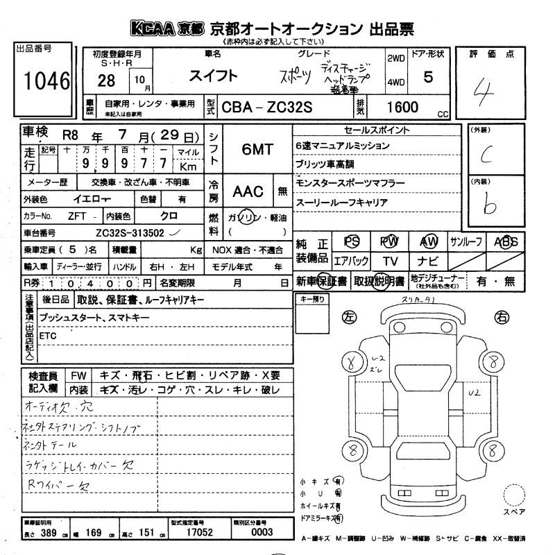 Все аукционы SUZUKI SWIFT SPORTS