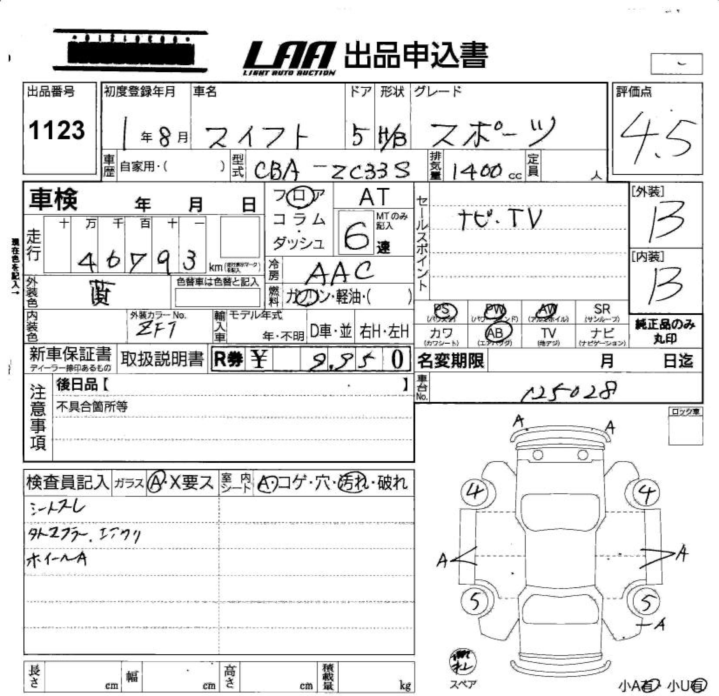 SUZUKI SWIFT SPORTS - лот 1123