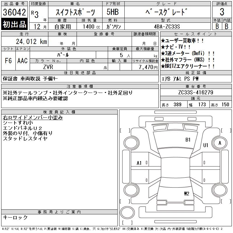 SUZUKI SWIFT SPORTS - лот 36042