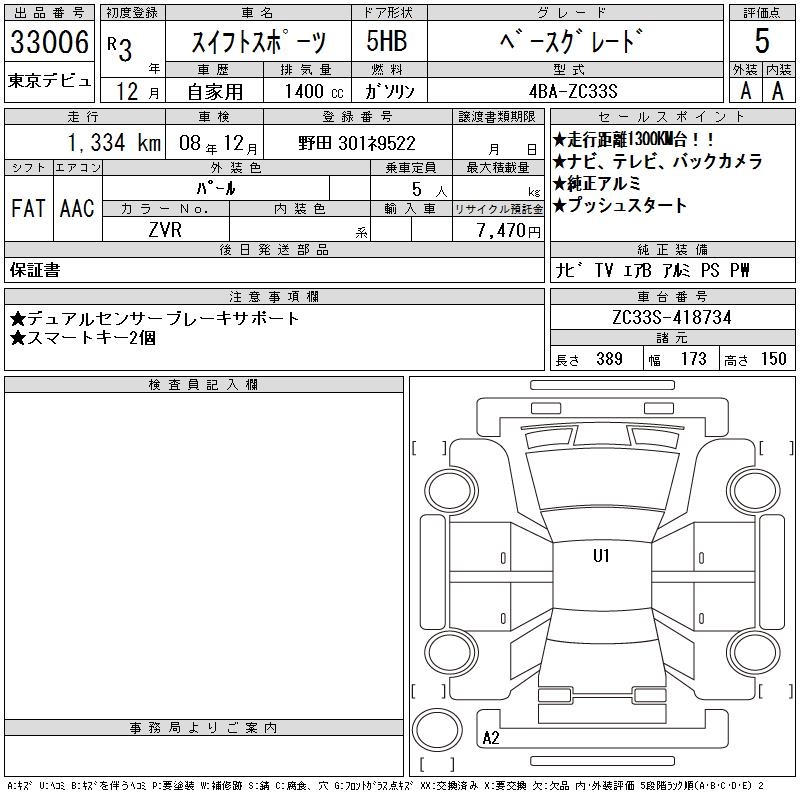 SUZUKI SWIFT SPORTS - лот 33006