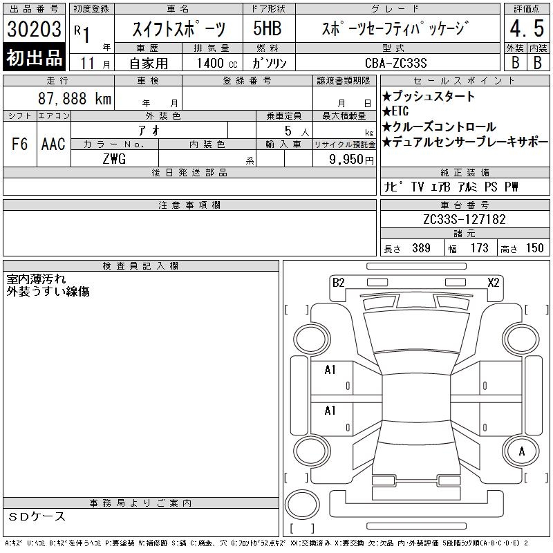 Все аукционы SUZUKI SWIFT SPORTS
