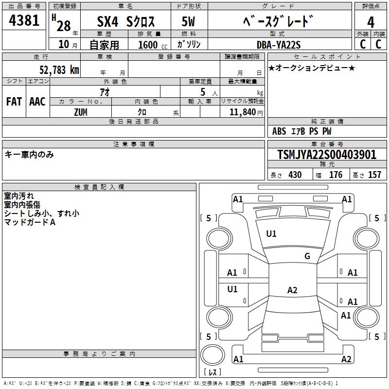 SUZUKI SX4 S-CROSS BASE GRADE - лот 4381