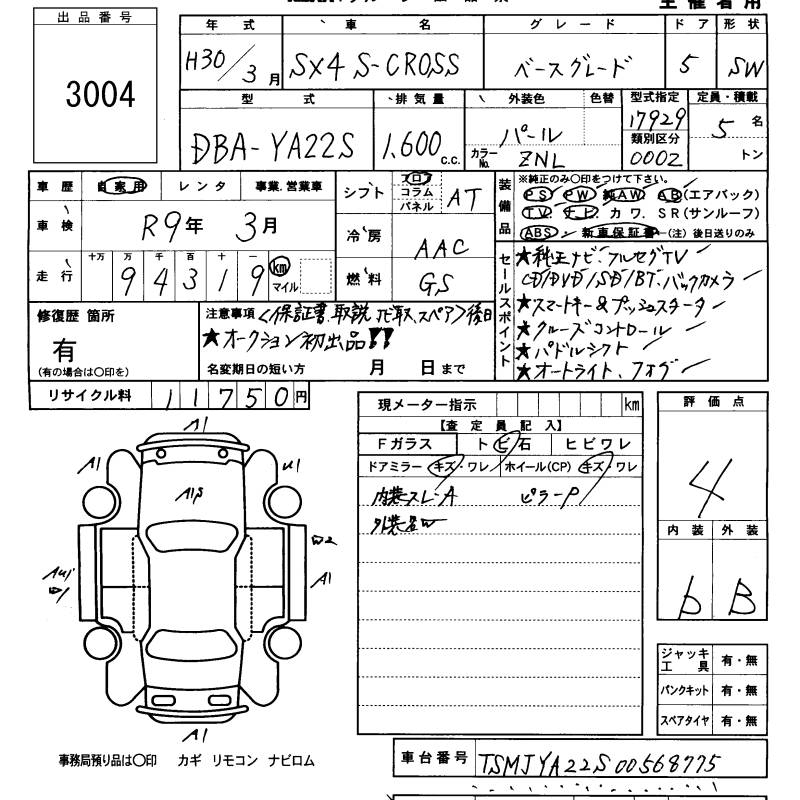 SUZUKI SX4 S-CROSS BASE GRADE - лот 3004