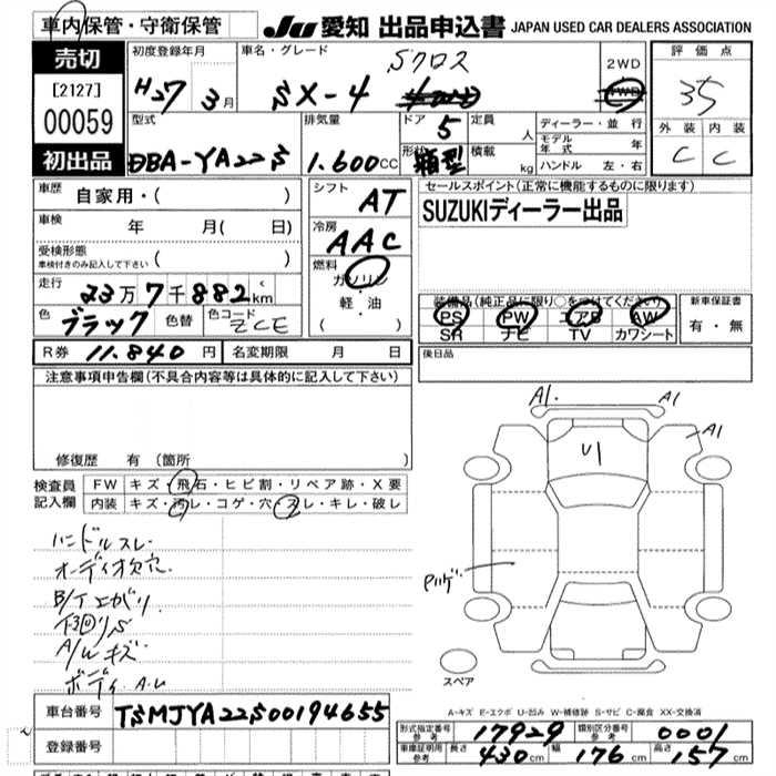 Все аукционы SUZUKI SX4 S-CROSS