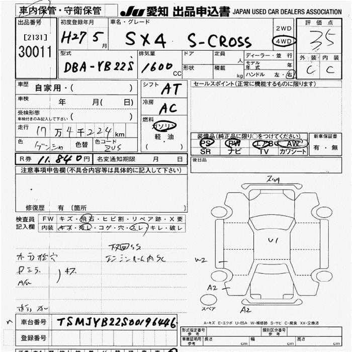 SUZUKI SX4 S-CROSS - лот 30011