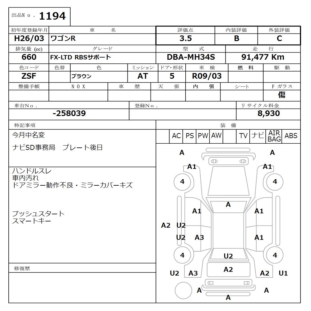 SUZUKI WAGON R - лот 1194