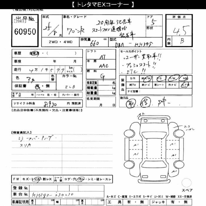 SUZUKI WAGON R - лот 60950