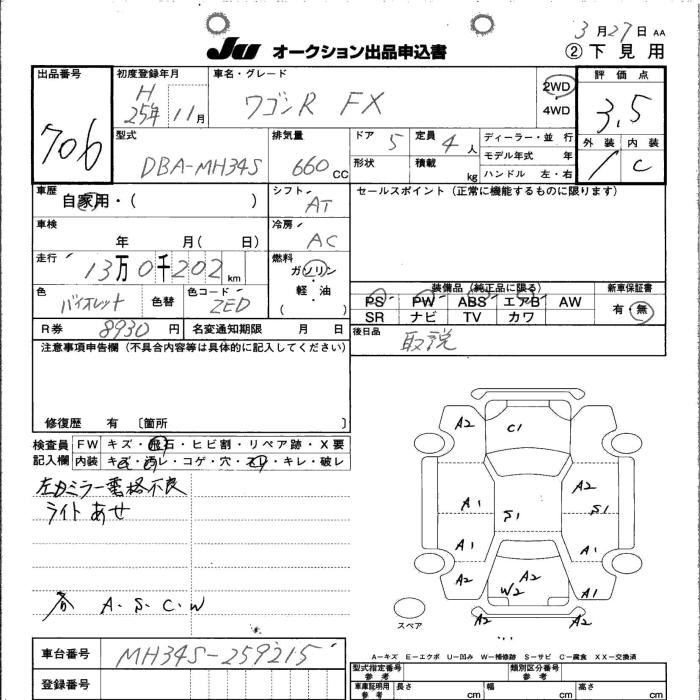 SUZUKI WAGON R - лот 706