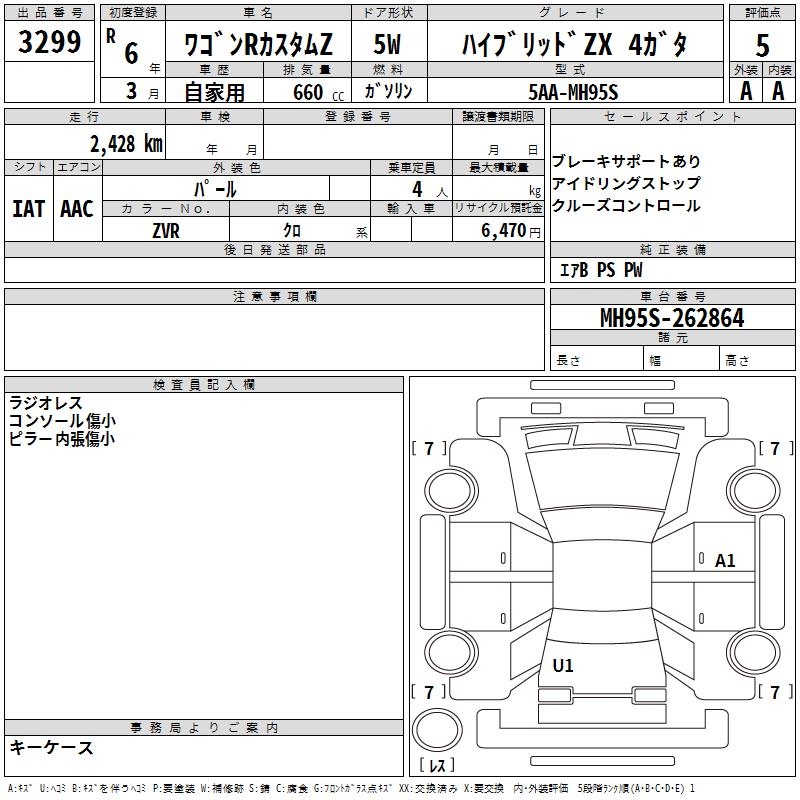 SUZUKI WAGON R CUSTOM Z HYBRID ZX 4 RATTLING - лот 3299