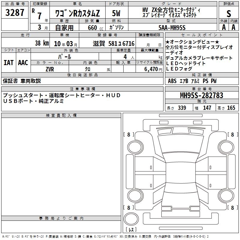 SUZUKI WAGON R CUSTOM Z HYBRID ZXZEN HOWE I MONITOR - лот 3287