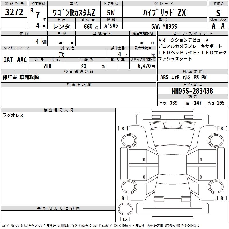 SUZUKI WAGON R CUSTOM Z HYBRID ZX - лот 3272