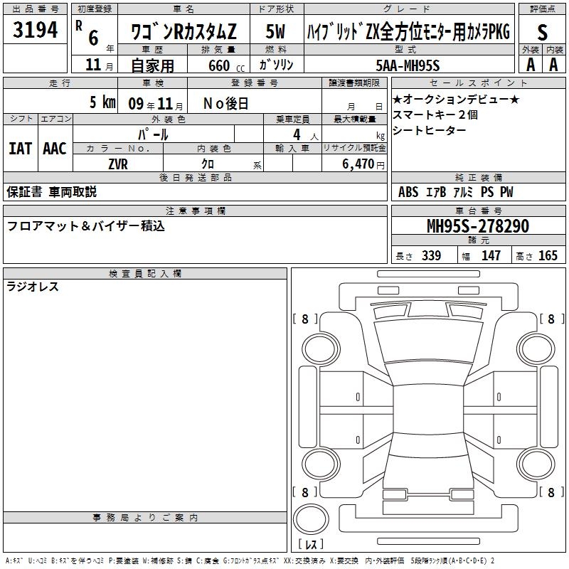 SUZUKI WAGON R CUSTOM Z HYBRID ZXZEN HOWE I MONITOR - лот 3194