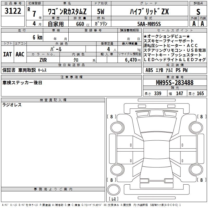 SUZUKI WAGON R CUSTOM Z HYBRID ZX - лот 3122