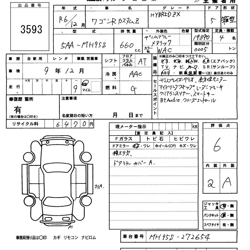 SUZUKI WAGON R CUSTOM Z HYBRID ZX - лот 3593