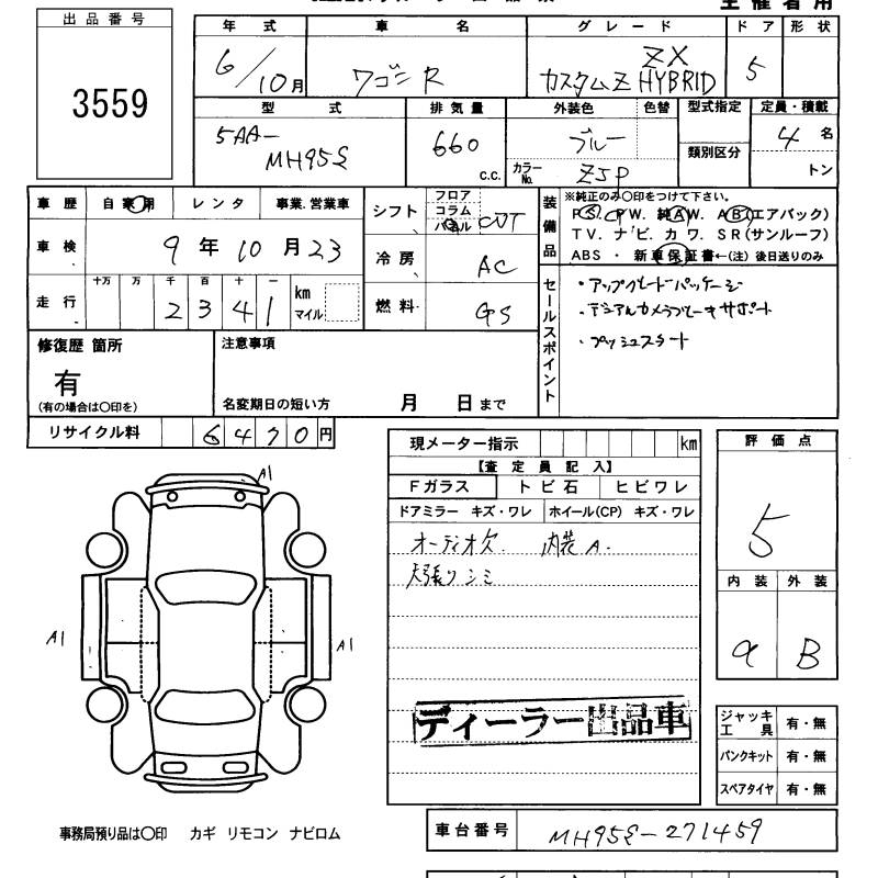 SUZUKI WAGON R CUSTOM Z HYBRID ZX - лот 3559