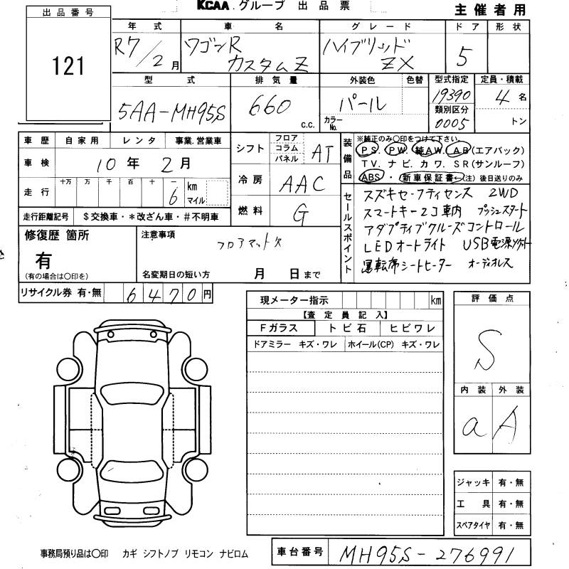 SUZUKI WAGON R CUSTOM Z HYBRID ZX - лот 121