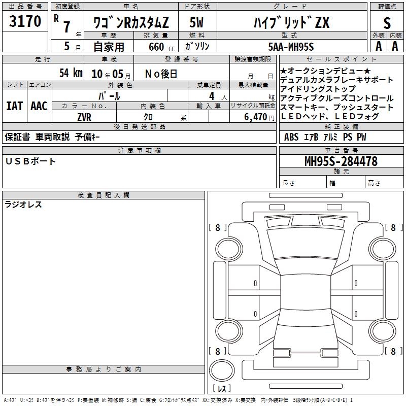 SUZUKI WAGON R CUSTOM Z HYBRID ZX - лот 3170