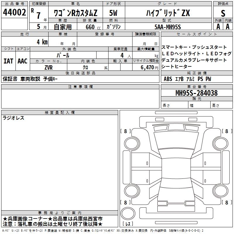 SUZUKI WAGON R CUSTOM Z HYBRID ZX - лот 44002